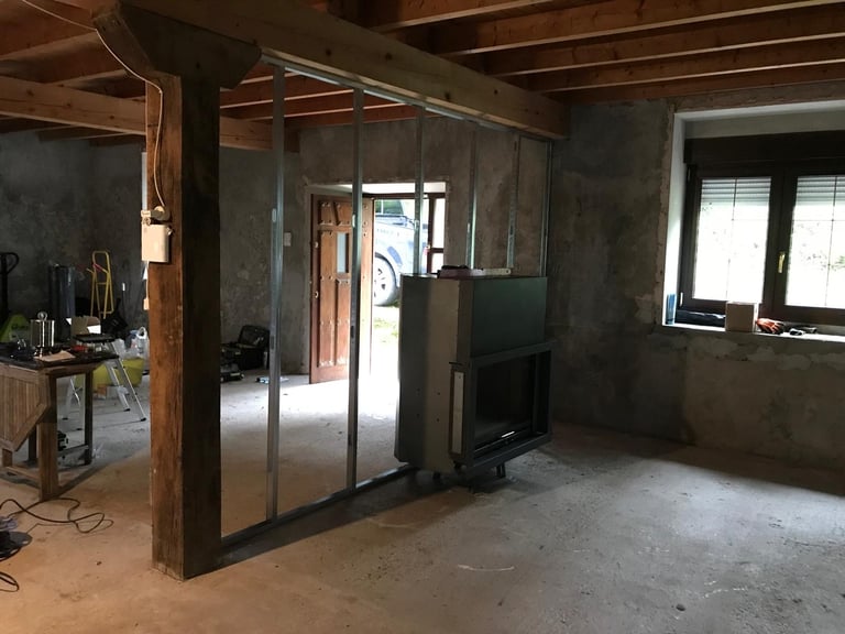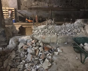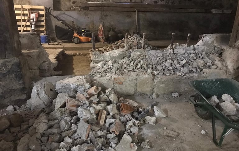 Con el proyecto definido, arrancó la fase de obra. Durante esta etapa, coordinamos cada detalle con los equipos técnicos y artesanos, asegurando que cada paso respetara el diseño inicial. Se trabajó en la recuperación de elementos originales, como vigas de madera y muros de piedra, combinándolos con nuevas soluciones constructivas que aportaran confort y eficiencia. Fue un proceso riguroso, pero también lleno de emoción al ver cómo la casa empezaba a contar una nueva historia.